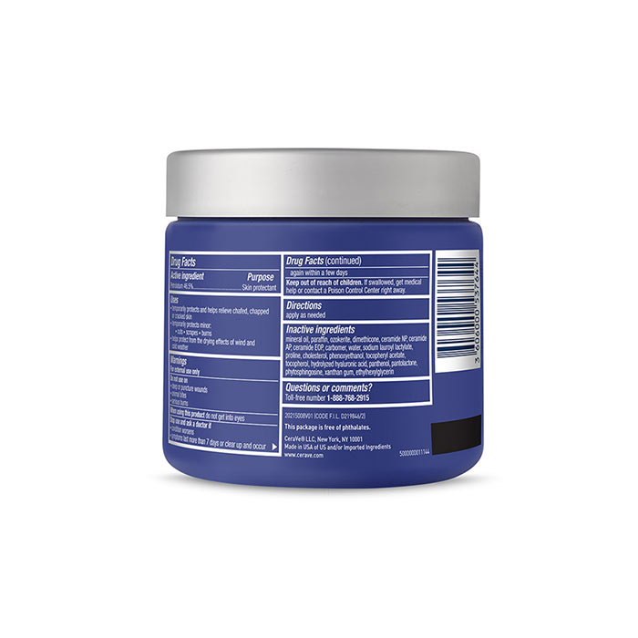 CeraVe Healing Ointment is a lanolin-free ointment formulated with petrolatum, hyaluronic acid, and ceramides. This non-greasy formula hydrates and soothes very dry skin. It also temporarily protects and helps relieve chafed, chapped, or cracked skin.