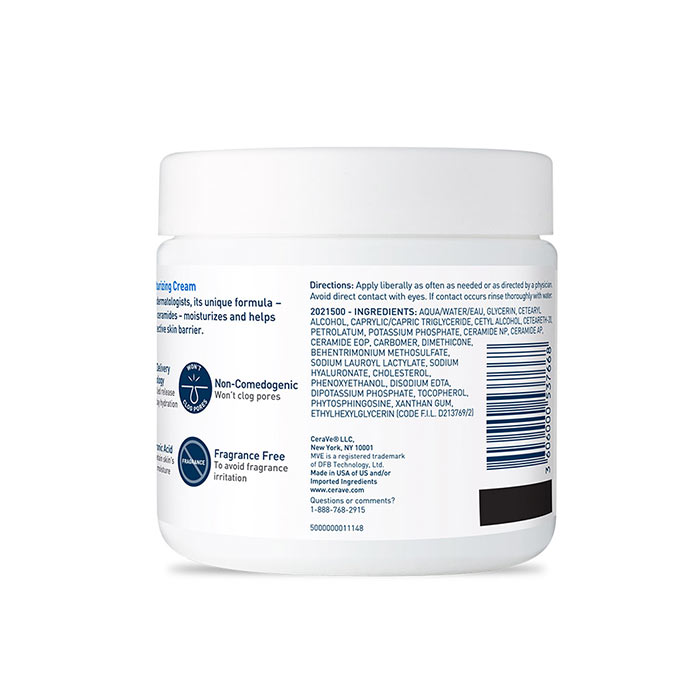 CeraVe Moisturizing Cream is a rich, non-greasy, fast-absorbing moisturizer with three essential ceramides that lock in skin's moisture and help maintain the skin's protective barrier.