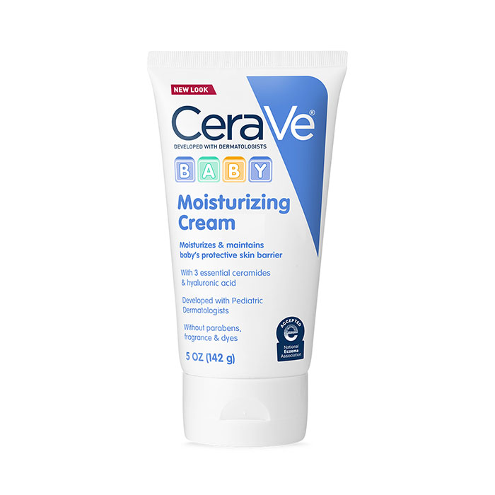 OurCeraVe Baby Moisturizing Cream formula has three essential ceramides that help maintain the skin’s natural protective barrier in addition to ingredients like fatty acids and cholesterol.